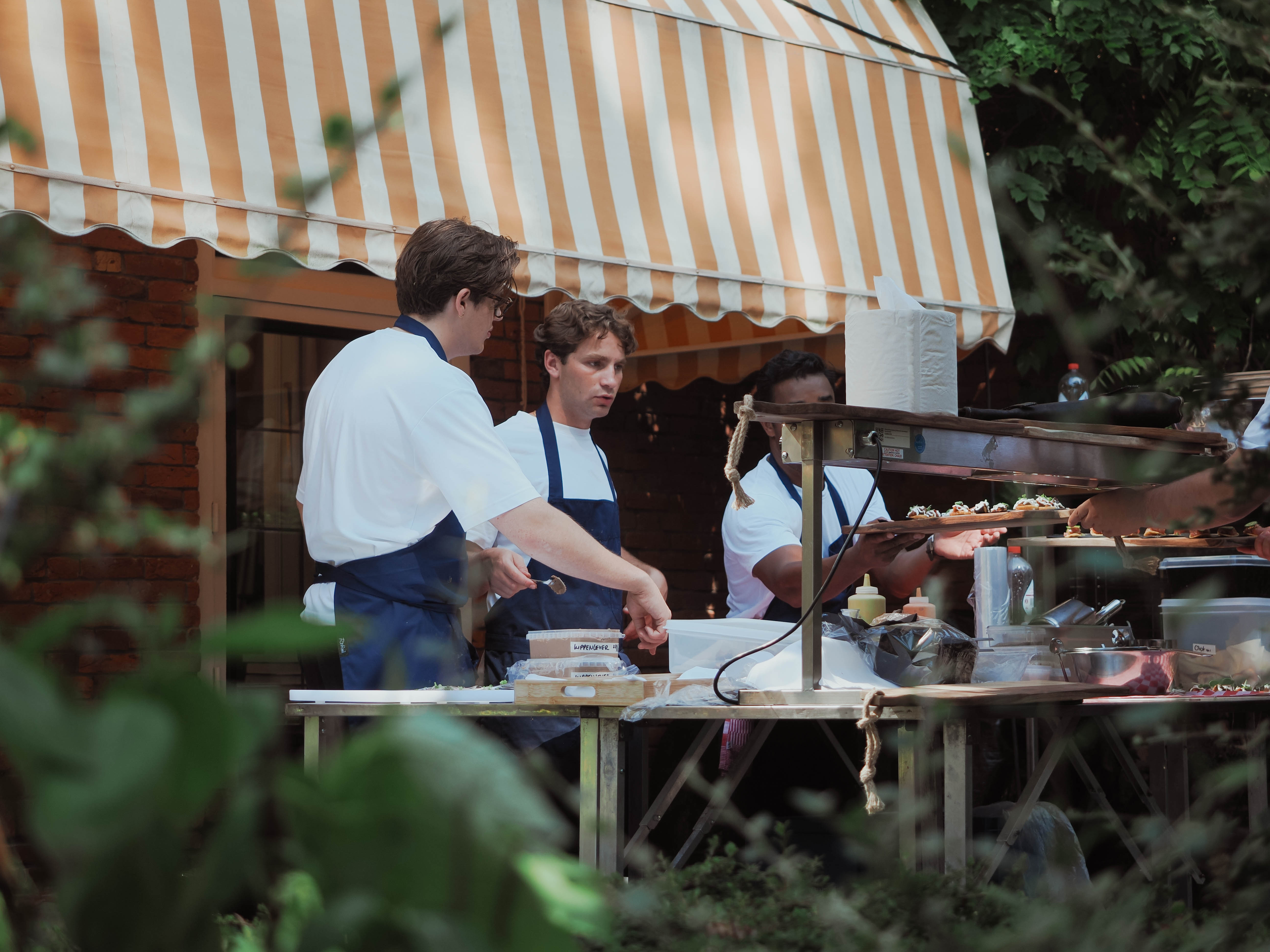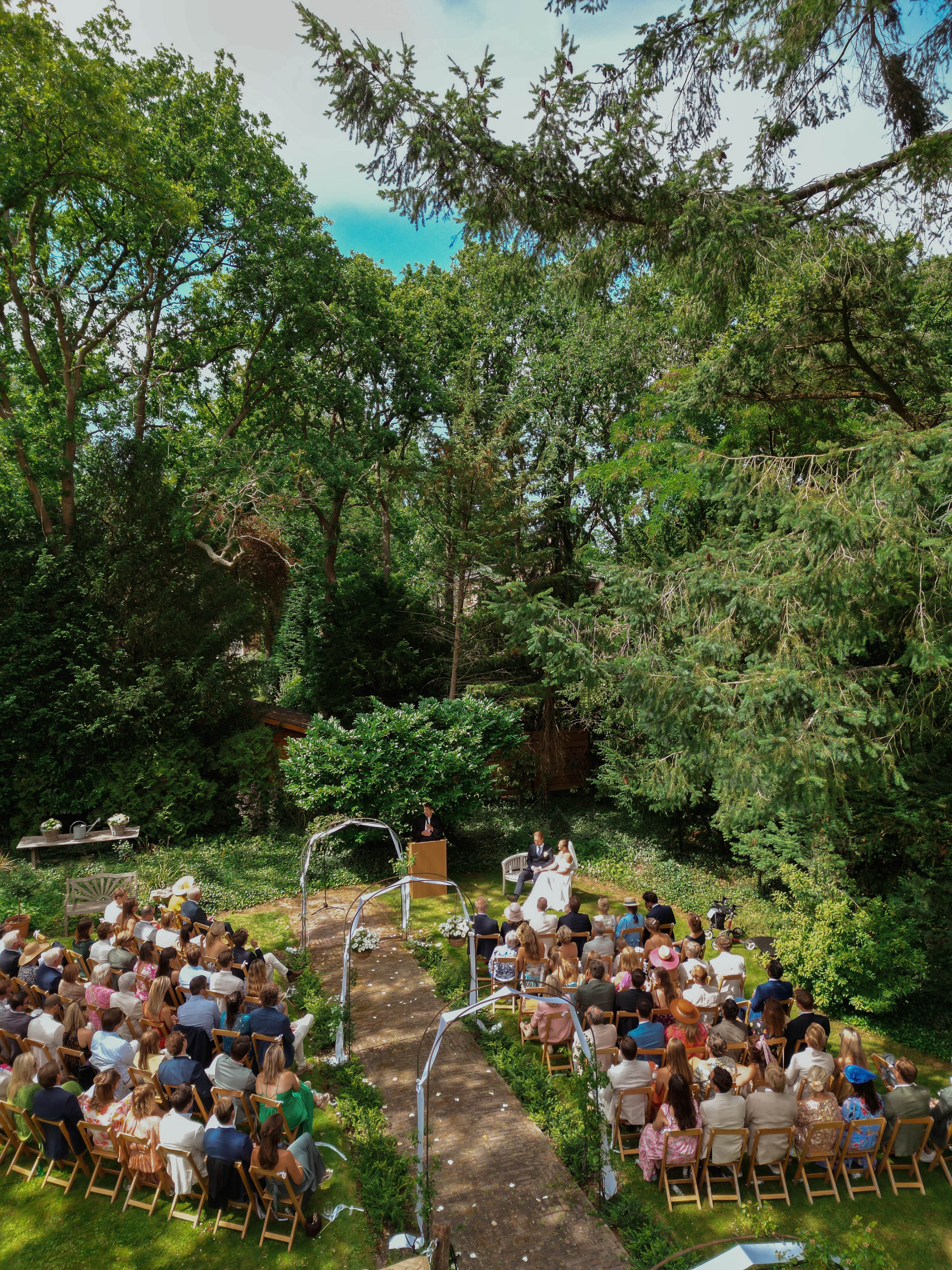 Voor W&C mochten wij een complete huwelijksdag verzorgen, van ontvangst tot feest. De dag begon met een warm welkom, begeleid door een energieke trommelband die meteen de toon zette voor een ontspannen en feestelijke sfeer. Daarna volgde een ceremonie in de buitenlucht, onder stralende omstandigheden. Aansluitend namen de gasten plaats aan ronde tafels voor een Italiaans geïnspireerd diner, waar samen tafelen en genieten centraal stonden. Na het diner ging de avond moeiteloos over in een feest, waarbij de dag eindigde zoals hij begon: vol energie, beleving en samenzijn.